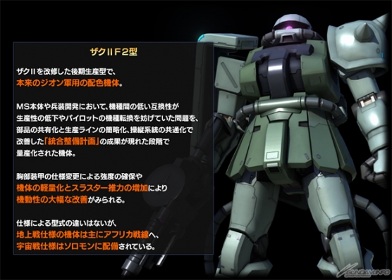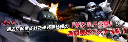 なお、キャンペーン期間中、ジオン公国軍では本来のジオン軍用の配色機体が、地球連邦軍では過去に配信された連邦仕様の機体が入手可能となる。