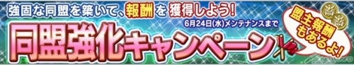 期間終了時に、所属する同盟が特定の条件を満たしていた場合、その同盟員全員にガシャメダルがプレゼントされる。強固な同盟を築き、ガシャメダルをたくさん獲得しよう。