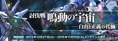 期間中、イベントモード「討伐戦 鳴動の宇宙‐自由と正義の対価」が出現し、『機動戦士ガンダムSEED』に登場するエースパイロットたちがプレイヤーの前に立ちふさがる。さらに、強敵の待ち構えるエリアを攻略することで「バスターガンダム」をはじめとした様々な報酬を獲得することができる。また、強敵との戦いで好成績を収めた司令官にはランキング報酬も用意されているので、ふるってイベントに参加しよう。開催期間は11月10日(火)メンテナンスまで。
