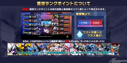 獲得できるRPは、味方と敵の総コストによって補正がかかる。自分の部隊の総コストが相手部隊よりも低ければ低いほど、戦闘終了時に獲得できるRPにプラス補正がかかり、さらに、これまでのキャンペーン機体を開発していると、ボーナスでRPを得ることができる。