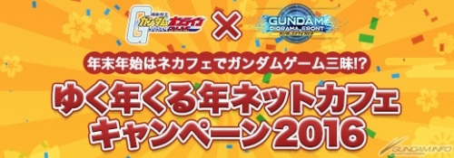 キャンペーン開催期間中にネットカフェでガンダムジオラマフロントをプレイすると、公認ネットカフェ特典に加え、1日1回初回ログイン時に「DXガシャチケット×1」がプレゼントされる。開催期間は2016年1月5日(火)メンテナンス開始まで。