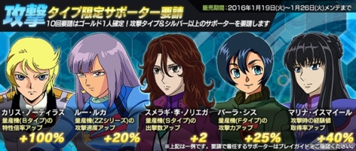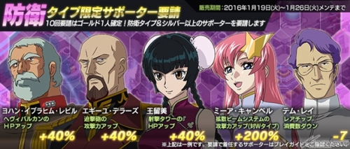 本日1月19日(火)より、「攻撃タイプ」と「防衛タイプ」のみが出現する限定のサポーター要請配信がスタートした。さらに「10回要請」でプレイした場合はゴールドクラスのサポーターが必ず1人出現する。