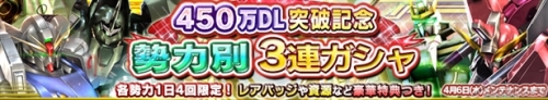 ■「450万DL突破記 勢力別3連ガシャ」登場!