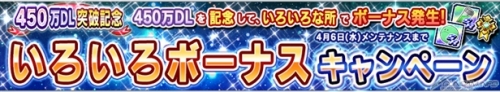■「450万DL突破記念 いろいろボーナスキャンペーン」開始!