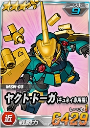同機を倒した際に引くことができるチャンスガシャSには「★3 ヤクト・ドーガ(ギュネイ専用機)」などを獲得できるチャンスがあるほか、エースユニットガシャには「ヤクト・ドーガ(ギュネイ専用機)&α・アジール」に対し6倍の攻撃力を発揮する「★2 νガンダム」が追加される。