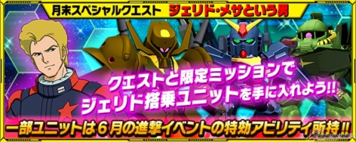 開催中のイベント「ジェリド・メサという男」には、『機動戦士Ζガンダム』の主人公カミーユ・ビダンにとって宿敵の男「ジェリド・メサ」が登場。イベントクエストで何度も出てくるジェリドを蹴散らし、イベント報酬であるジェリド搭乗ユニットを手に入れよう。