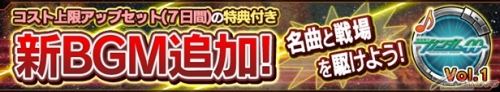 | ガンダム00 BGM Vol.1 | 600CP | ○BGM「FIGHT」 ○BGM「INTERVENTION」 ○BGM「COUNTERATTACK」 ○コスト上限アップセット(7日間) |