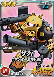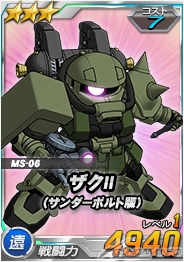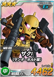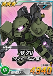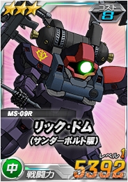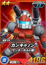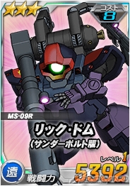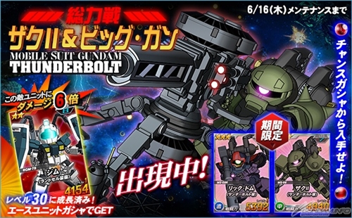 同機を倒した際に引くことができるチャンスガシャには「★3 リック・ドム(サンダーボルト版)」や「★3 ザクII(サンダーボルト版)」などを獲得できるチャンスがあるほか、エースユニットガシャには「ザクII&ビッグ・ガン」に対し6倍の攻撃力を発揮する「★2 ジム(ランドセル装備)」が追加される。
