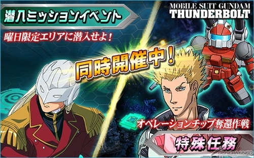 特殊任務では、期間限定のマップで登場する強力な敵を倒し、オペレーションチップを獲得することが目標となっており、今回は『機動戦士ガンダム サンダーボルト』をイメージした期間限定マップが登場。期間限定のマップを進めることで、「★2 ガンキャノン(サンダーボルト版)」や「★2 イオ・フレミング」のほか、★3パイロットの「★3 クローディア・ペール」と「★3 カーラ・ミッチャム」を獲得することができる。
