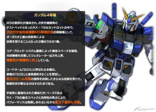キャンペーン期間中は、設計図報酬として特別な汎用タイプMS「ガンダム4号機」の設計図がドロップする。さらに、アップデートで既存MSの上位レベル追加、マップの入れ替えなども実施され、「出撃エネルギー増量キャンペーン」もスタートしたので、あわせて紹介していこう。