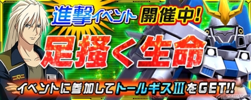 期間中にイベントクエストをクリアすると、「進撃pt」や「Eチップ」を獲得できる。「進撃pt」は、一定数に到達するごとに「SR トールギスIII」などのユニットやΩクリスタルなどの豪華報酬が手に入るほか、「Eチップ」は「R トールギスIII」や「SSR確率10%ガシャチケット」など、ユニットやアイテムと交換できる。