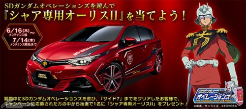 キャンペーンは、本日6月16日(木)から7月14日(木)メンテナンス開始までの期間で開催。ゲームをプレイし、「サイド7」までをクリアして応募すると、抽選で1名に「シャア専用オーリスII(コンプリートカー)」がプレゼントされる。既に「サイド7」をクリアしているプレイヤーも対象となるので、ぜひとも応募してみよう。