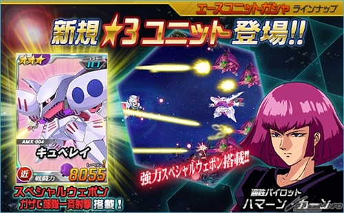 本日よりエースユニットガシャに、スペシャルウェポンとして「ガザC部隊一斉射撃」を搭載する「★3 キュベレイ」が追加された。