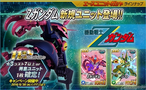 キャンペーン期間中は、「エースユニットガシャ」および「11連エースユニットガシャ」から獲得できる★3コスト9以上のユニットの獲得確率が2倍になるほか、11連エースユニットガシャを引くと、最後に登場する1体が必ず★3コスト7以上の機体か、開催中の総力戦、超総力戦の得意ユニットとなる。
