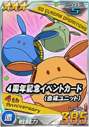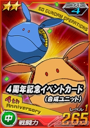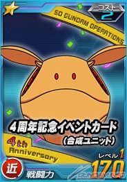 さらに、ダメージを与えた際に獲得できるスコア報酬では、「★3 Ζガンダム」、「★3 ジ・O」に加え、「4周年記念イベントカード」も獲得できるので、ぜひこの機会に部隊のユニットを強化しよう。「4周年記念イベントカード」は、それぞれ「遠・中・近」の属性が存在する。