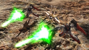シラヌイ装備時は、自機か僚機かを選択して展開できるサブ射撃のドラグーンバリアや、チャージ格闘のムラサメの援護により射撃戦を優位に運ぶことが可能。