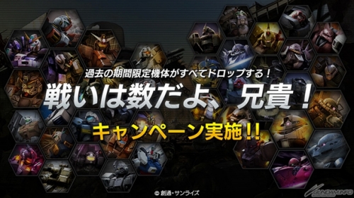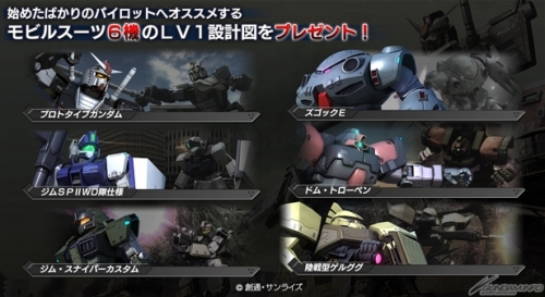 期間中に出撃すると、「プロトタイプガンダム」、「ズゴックE」など、ゲームをはじめたばかりのパイロットへオススメの6機がプレゼントされる。