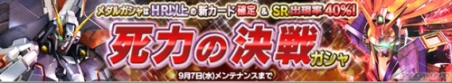 最終決戦に臨む「SR クロスボーン・ガンダムX1フルクロス」などが手に入る「死力の決戦ガシャ」登場。復刻イベント「緊急指令!ガンダムエクシアを討て!」に加え、「アクション応援ログインキャンペーン」、「同盟強化キャンペーン」、「ユニット強化プロジェクト」も開催。