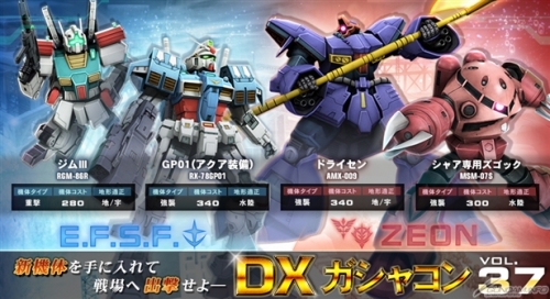 「月刊ガンダムエース」にて連載中の「機動戦士ガンダム0083 REBELLION」との特別コラボレーション機体「GP01(アクア装備)」などが手に入る「DXガシャコン VOL.37」登場。8月27日(土)より4週連続で「限定大規模戦トーナメント GENERATION.VS」開催。「軍備拡張計画」と「新兵応援キャンペーン」も。