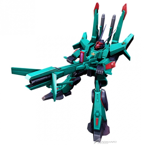 12連装ミサイルランチャーや、大型対艦ミサイル、さらに特徴的な武装であるメガ・ランチャーなど多彩な装備が魅力的な機体だ。