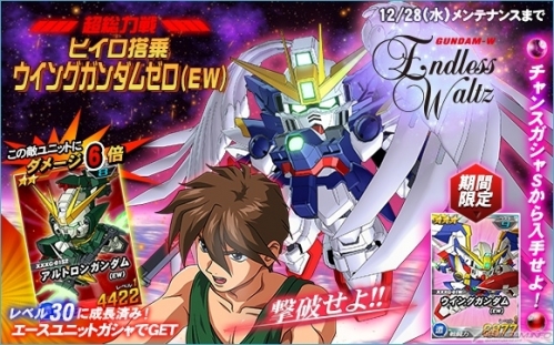 超総力戦に「ヒイロ搭乗ウイングガンダムゼロ(EW)」が、エースユニットガシャに「★4 トールギスIII」などが登場。11連ガシャ「★3ハロおまけキャンペーン」、「ガンダムW系ユニット★3以上確率アップキャンペーン」、「ルーキー応援ユニットチケットプレゼントキャンペーン」開催。「スペシャルガシャ」実装。