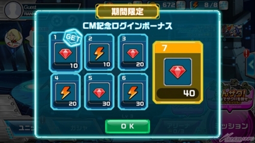 TVCM放送を記念し、2017年1月4日(水)23:59までの期間中、ゲームへログインした全ユーザーに、ログインボーナスとして、アイテム「ダイヤ」が最大100個プレゼントされる。