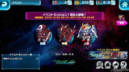 2017年1月9日(月・祝)23:59までの期間で、『機動戦士ガンダム00』のイベントが開催中。