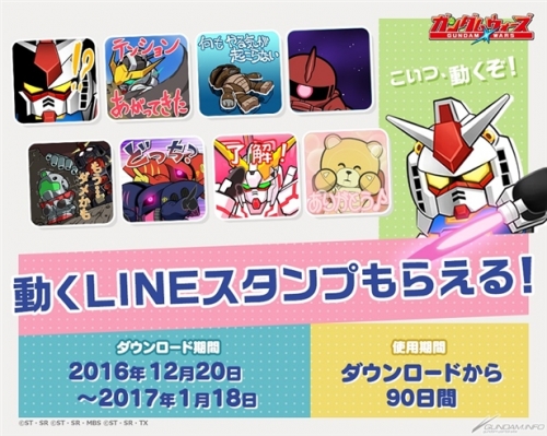 「LINE: ガンダムウォーズ」LINEスタンプ第2弾が、期間限定で好評配信中。今回のスタンプは全8種で、可愛く動くアニメーションがついている。ぜひ手に入れて使ってみよう。