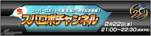 「スーパーロボット大戦」シリーズ生誕25周年記念番組「生スパロボチャンネル」が、2月22日(水)21:00より配信されることが決定した。