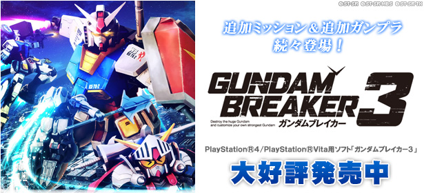 ガンダムブレイカー3 対応機種 : PlayStation®4 / PlayStation®Vita 発売予定日 : 2016年3月3日(木) ジャンル : 創壊共闘アクション 価 格 :[PS4]7,600円(税抜・DL版同価格) [PS Vita]6,800円(税抜・DL版同価格) CERO : A |