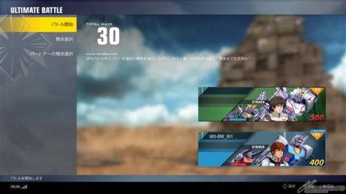○出撃時に「ソロプレイ」と「オンラインプレイ」の選択が可能で、「オンラインプレイ」を選択すると、エクストラバトルが他のプレイヤーとの最大6人までのオンライン対戦プレイとなり、これまでにないプレイフィールが楽しめる。