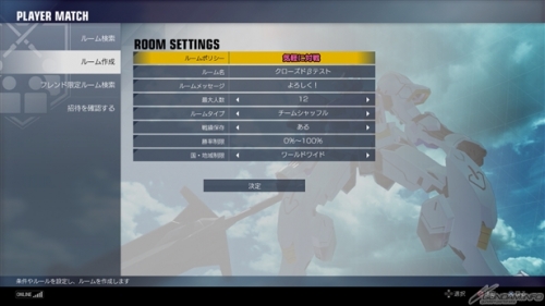 ○クローズドβテストでは限定された条件のみ設定可能だが、製品版では、より細かい条件でルームを作成したり検索することが可能になる。