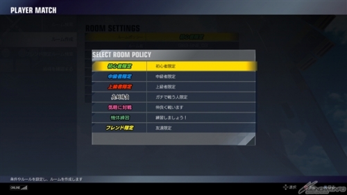 ○さまざまな条件を自由に設定してルームを作成/検索し、最大18人のプレイヤーとオンライン2on2対戦バトルがプレイできるモード。