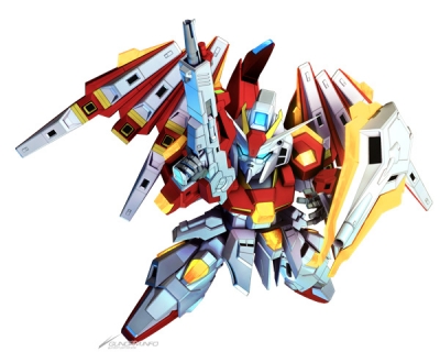 「ムーア同胞団」に配備されたガンダムタイプのMSで、同時代の機体に比べて破格の重武装が施されている。また、ランドセルのサブアームを使用することで、計4枚ものシールドを装備可能とし、各所に取り付けられたスラスターやアポジモーターなどにより、その推力は高機動型MSにも匹敵する。