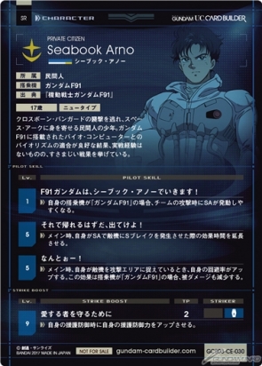 OPEが27と回避の優れたパイロットカード。スキルのうち2つが「ガンダムF91」と関係している。