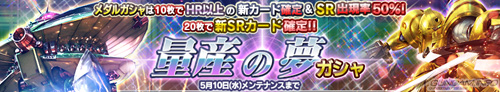 「SR ビグ・ザム」、「SR ゴールドスモー」など新カードが14枚追加されたガシャ「量産の夢ガシャ」登場。「SR 百式改」やその覚醒カードが獲得できる同盟イベント「強襲!黄金のエース」開催。さらに「GW キャンペーン」、「ユニット強化プロジェクト」、「CP 購入キャンペーン」も開始。