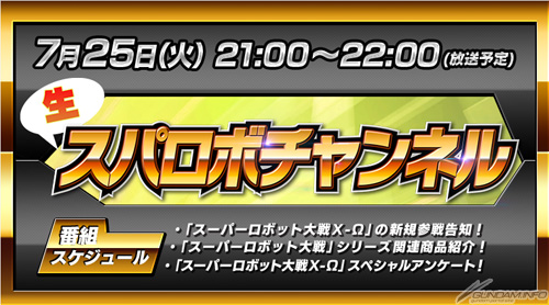 スーパーロボット大戦シリーズに携わる開発者のトークや、「スーパーロボット大戦X-Ω」の最新情報、企画コーナー、番組プレゼントなどもりだくさんでお送りします。