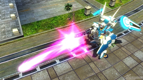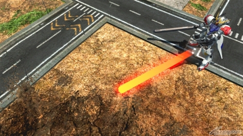▲メイン射撃武装「ビーム・ライフル」は、ビーム・ライフルからビームを発射する。