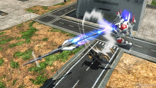 ▲特殊射撃武装「大型レールガン」は、大型レールガンから実体弾を発射する。