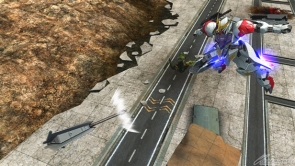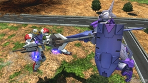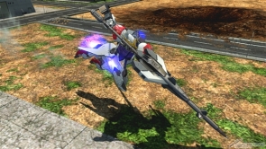 ▲特殊格闘武装「特殊移動」は、特殊移動を行う。レバー入力により移動方向を変更可能で、移動中に射撃ボタンを追加入力することでツインメイス投擲を行う。