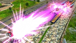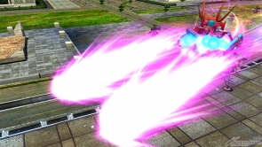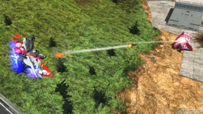 ▲サブ射撃武装「アサルトモード」は、アサルトモードでビームを発射する。レバー前入れで自機前面の射撃攻撃を防ぎつつ前進してビームを発射する。