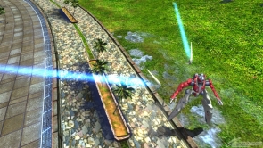▲格闘用武装「ビーム・サーベル」は、ビーム・サーベルを用いて格闘攻撃を行う。レバー後入れでトラフィック・フィンからトラクタービームを発射する。