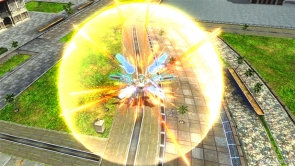▲チャージ射撃用武装「トラフィック・フィン」は、トラフィック・フィンを射出して攻撃を行う。敵との距離により攻撃が変化し、距離が近い場合は射出したトラフィック・フィンが敵に突撃攻撃を行う。距離が遠い場合は射出したトラフィック・フィンからトラクタービームを発射する。