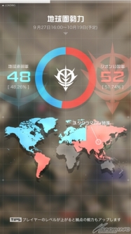 ▲本アプリの「一年戦争」は1ヶ月周期で行われる。自軍の勝利のため、一年戦争を戦い抜け!
