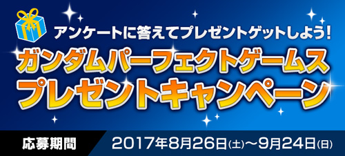ガンダムパーフェクトゲームスに関するアンケートにご回答いただいた方の中から抽選で、10名様に賞品をプレゼントいたします。