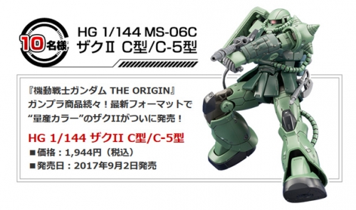 キャンペーンは「ガンダムパーフェクトゲームス」に関するアンケートに答えると、回答者の中から抽選で10名に「HG ザクII C型/C-5型」がプレゼントされるというもの。9月24日(日)までの開催となっているので、ぜひこの機会をお見逃しなく。