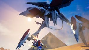 「サブレッグ飛行形態」による移動速度は本作の中でも極めて優秀で、戦いの面だけではなくあらゆる場面で活躍の場が見込めそうだ。スキー板による高速移動、それはバトル中ひときわ目を引くはずで、本機体を巡っての激しいパーツの奪い合いは必至!?