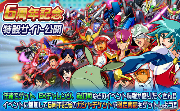 - 6周年の感謝を込めて、「100連+αWebガシャ」やガンダム×伊勢丹コラボグッズなどが当たる「6周年記念キャンペーン」を実施!