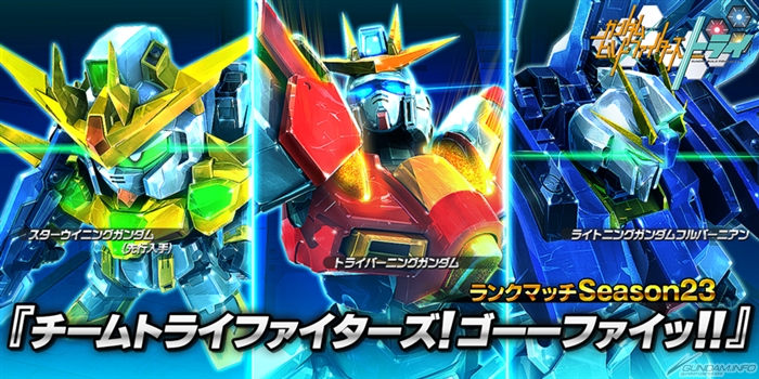 - 「チームトライファイターズ!ゴーーファイッ!!」キャンペーン開催!ランクポイントを獲得して「トライバーニングガンダム」と「ライトニングガンダムフルバーニアン」、バトオペNEXT初のSDガンダム「スターウイニングガンダム」を入手せよ!