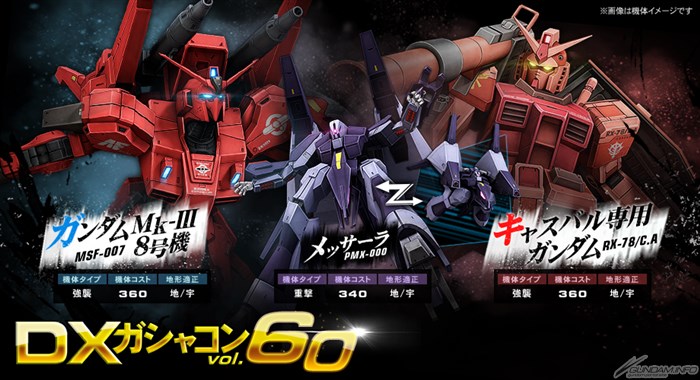 - 新機体「ガンダムMk-III 8号機」、「キャスバル専用ガンダム」、「メッサーラ」登場!「DXガシャコン VOL.60」配信開始!